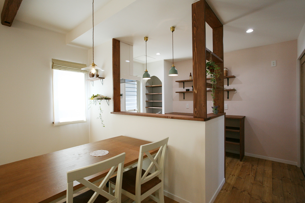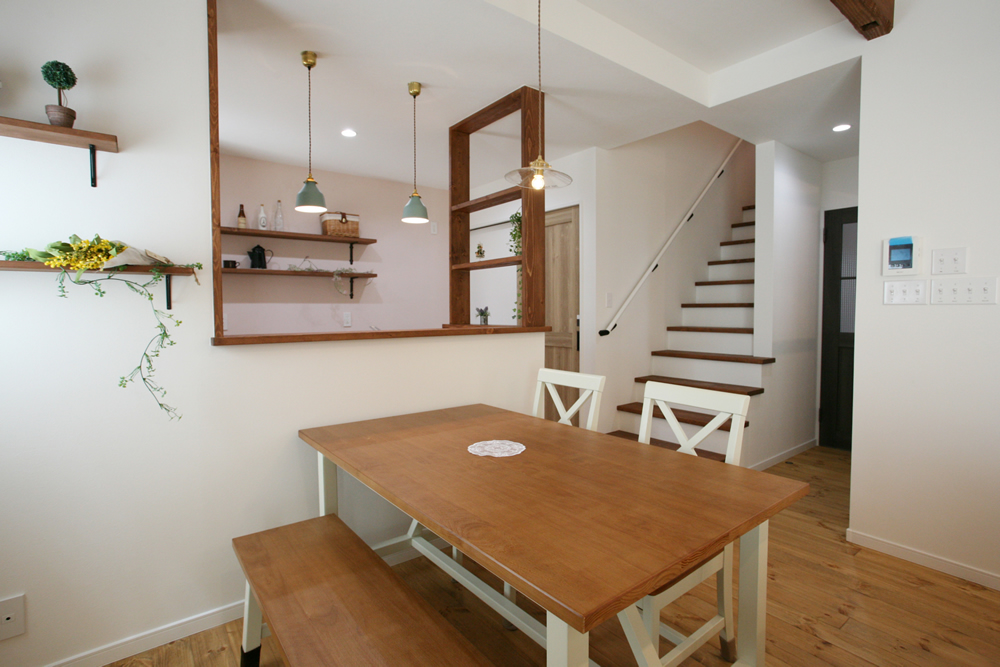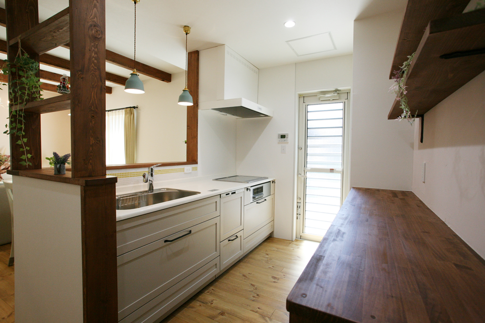 筑紫野市牛島に「Mamanの家」が完成しました。暮らしを楽しむ、子育てを楽しむをコンセプトに生まれたかわいいオールインワン住宅。外観は南フランスの片田舎をイメージし、塗り壁と白い窓枠との相性もピッタリでとってもステキな雰囲気です。お家の外観はチョコレートをイメージしたカラーで大人かわいくできています。レトロでおしゃれな照明や洗面台は勿論、広めに作られたキッチンや自然素材にもこだわりました。